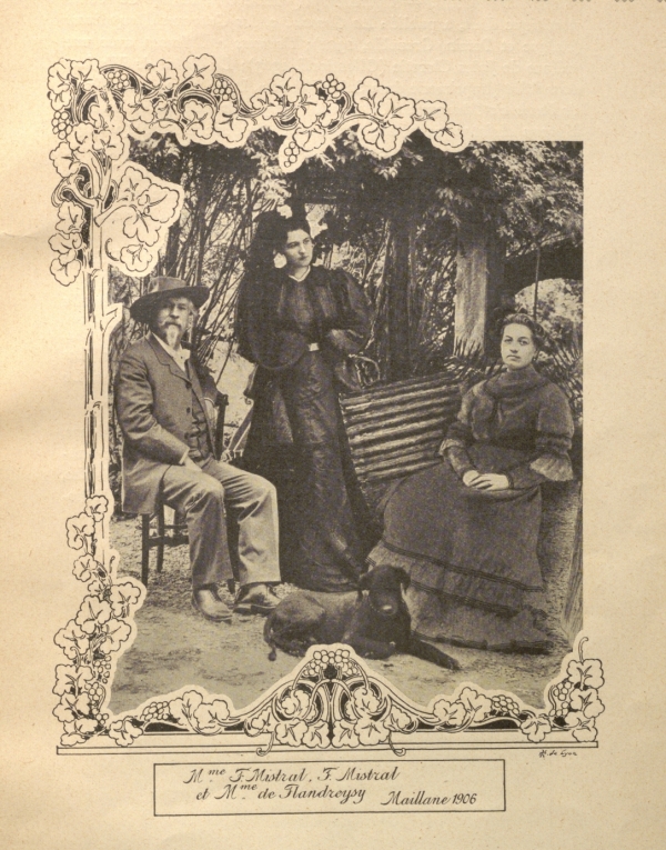 Ci-contre : Jeanne de Flandreysy avec Frédéric Mistral et son épouse à Maillane (1906) par Hellen. Rousset Henry, Les Dauphinoises célèbres, Grenoble : Impr. générale, [s.d.]14 p. (BMV, D11014)