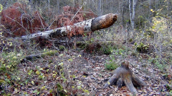Ci-dessus: arbres coupés par des castors (à gauche : novembre 2025 ; à droite : janvier 2023), commune de Menglon (Drôme)