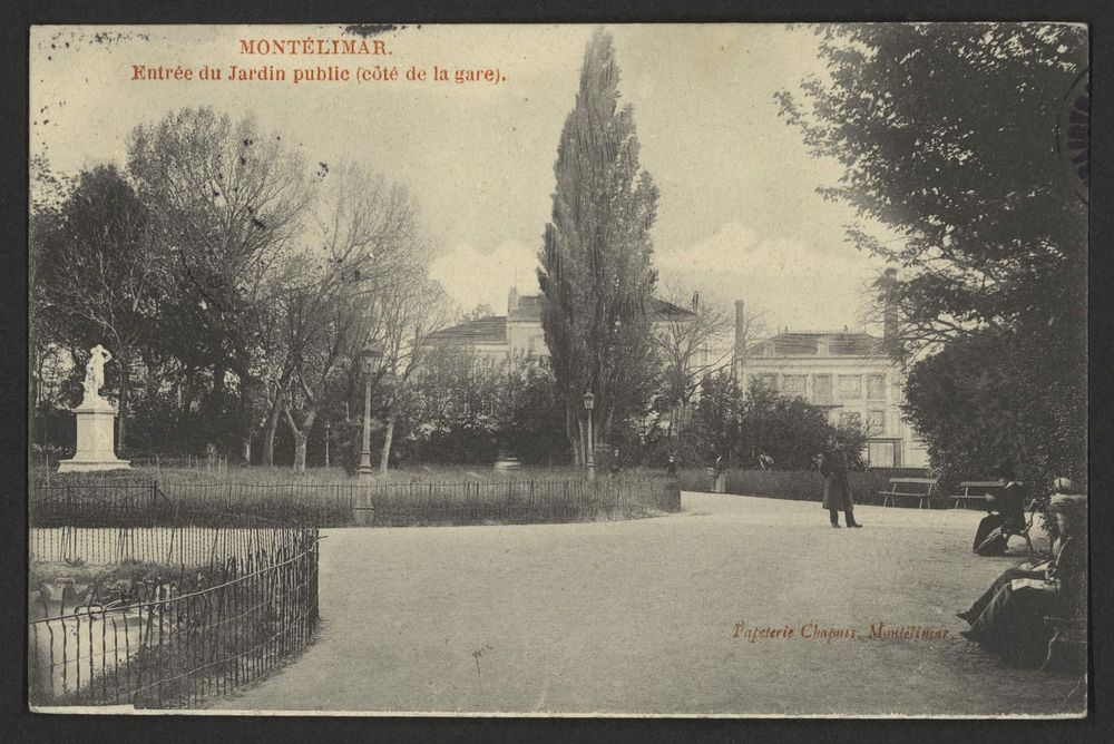 TitreMontélimar - Entrée du jardin public (côté de la gare)EditeurPapeterie Chapuis (Montélimar)Type de documentIconographie Cartes postalesFormat14x19 cm ; Noir et blancCoteB263626101_CP1965UtilisationDomaine publicSourceMédiathèques de Valence Romans AggloParticipez pour enrichir ces informationsContactez-nous