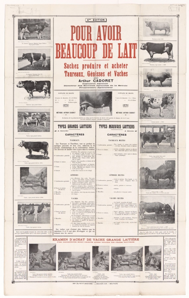 TitrePour avoir beaucoup de lait : Sachez produire et acheter Taureaux, Génisses et VachesEditeurMoutiers : imp. du Petit SavoyardDate[s.d.]Description1 afficheType de documentPublication imprimée AffichesFormat56x95 cmCoteB26362101_1AFF_108UtilisationDomaine publicSourceMédiathèque F. Mitterrand, Latour-Maubourg, ValenceParticipez pour enrichir ces informationsContactez-nous
