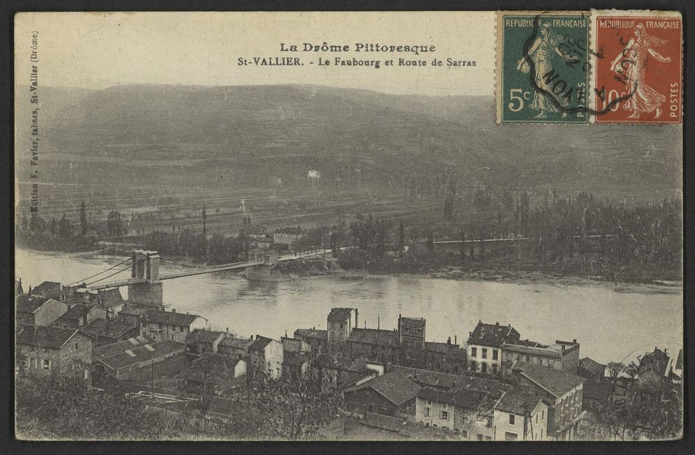 TitreSt-Vallier - Le Faubourg et Route de SarrasEditeurEdition F. Favier, tabacs (St-Vallier, Drôme)Date1910DescriptionCA 1910Type de documentIconographie Cartes postalesFormat14 x 9 cm ; Noir et blancCoteB263626101_CP1840UtilisationDomaine publicSourceMédiathèques de Valence Romans AggloParticipez pour enrichir ces informationsContactez-nous