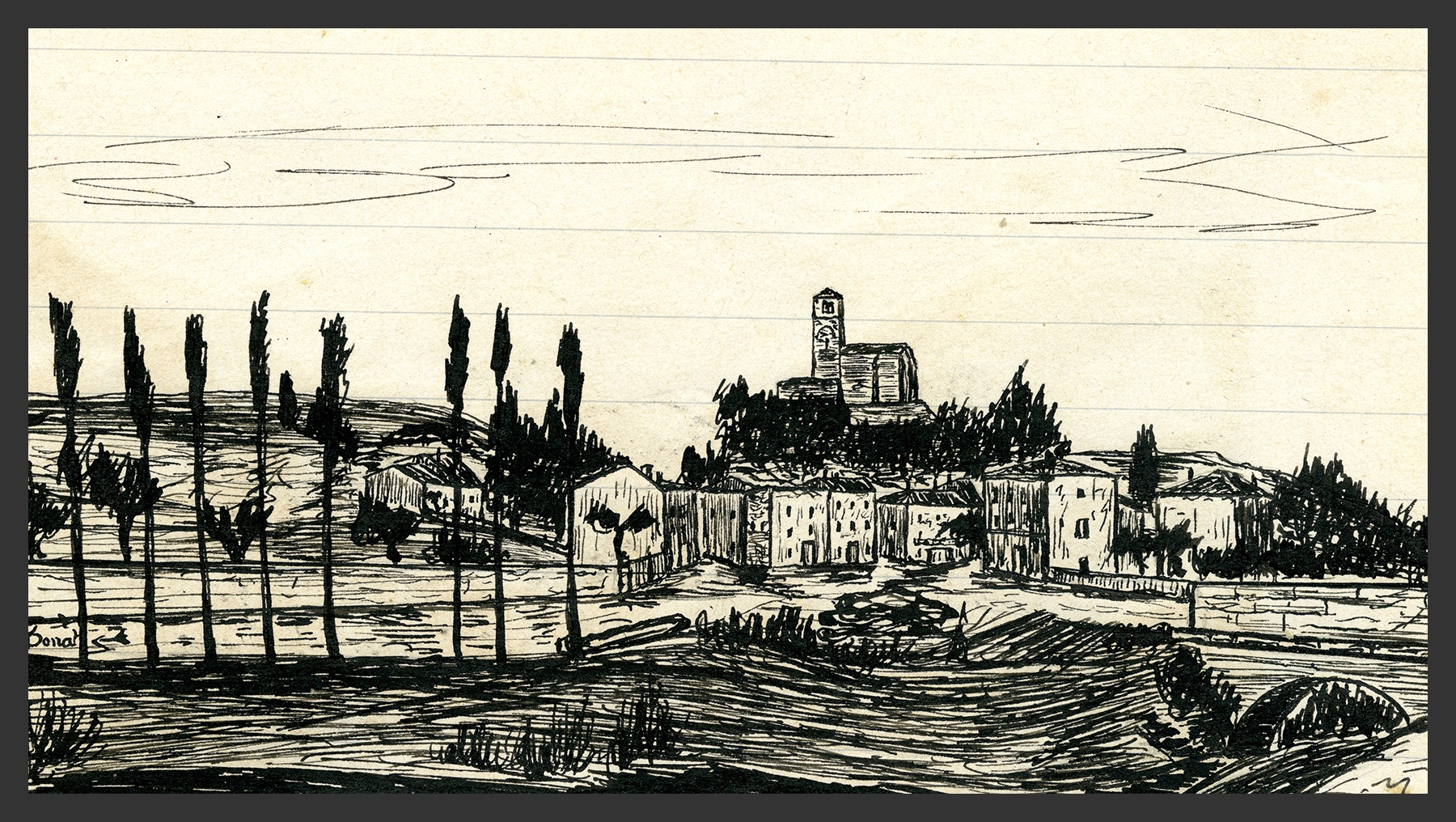 Jean-Marius Allègre a croqué de nombreux lieux et monuments que l'on retrouve précisément représentés sur des cartes postales anciennes...